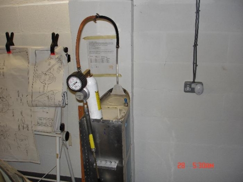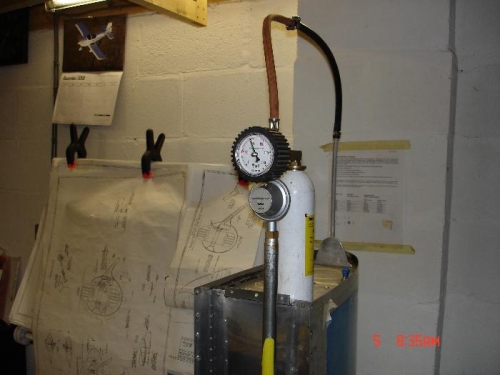 Carried out a leak test on the right fuel tank, pumped it up to 100 millibars and left it overnight.
