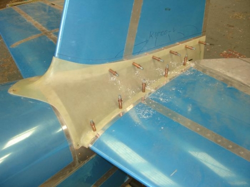 Fitting the emp fairing. Removed the empennage to fit the remaining nut plates and tap the longerons for the lower gap fairings.