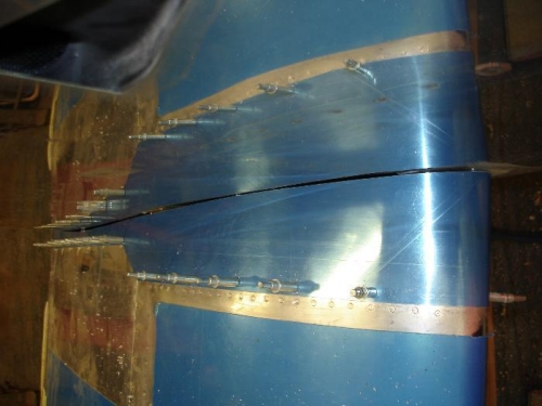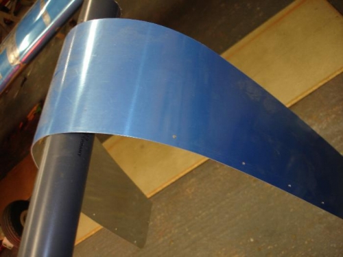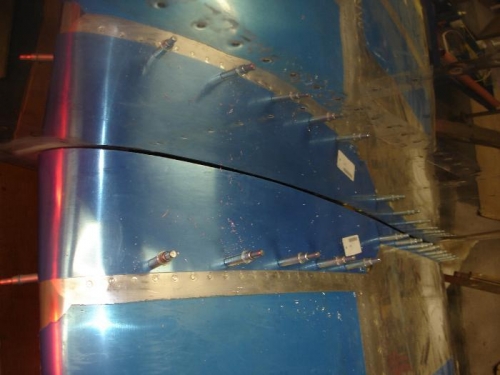 Post 5 of 5. Had a bit of a struggle fitting the first root fairing, so I kind of pre-formed the second one over a piece of plastic pipe. It worked a treat. I dimpled the two pre punched holes for the upper and lower screws, made shure the outboard edge was equidistance from the line of rivets, smoothed drilled and clecoed working bottom to top.