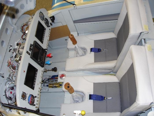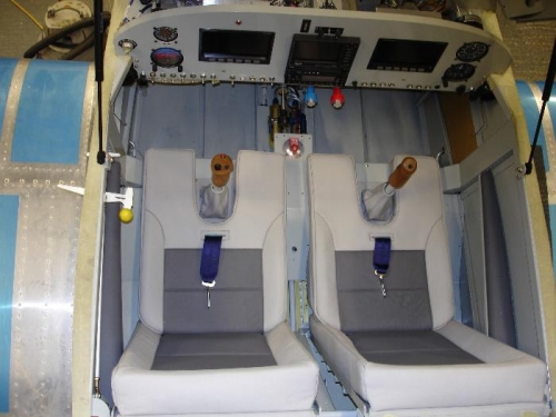 I picked up the seats from the trimmers today, he has made a realy good job of them. Two tone top quality leather double stiching stick gaiters booster cushions and arm rests all for £650, well chuffed. I re fit and wired the control sticks fitted the seat components and arm rests then me and the wife tried them for size and made plane noises for a good 10 mins. Ernie my Inspector came over and did the last inspection before disassemly paint and the move to the airport.