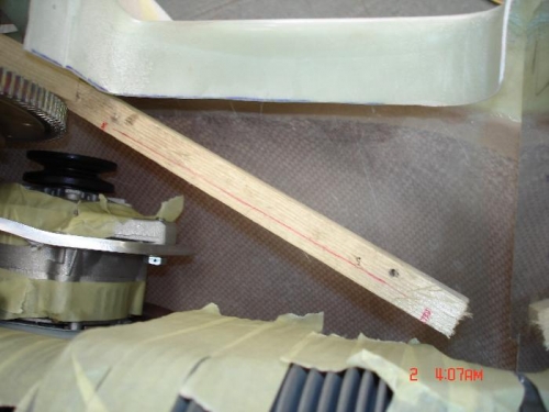 I wanted to come up with a better way to position the inlet floors and airbox without taking the bottom cowl on and of repeatedly, a couple of battens clamped to the ring gear did the trick