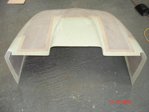 I got the lower cowl trimmed to fit around the gear leggs and firewall, then sanded the the top edges to mate with the upper half.