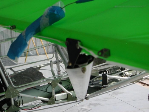 Secure right wing to airplane using AN4 bolts provided and secure wing struts to wing leading and trailing edges and fuselage bulkhead.