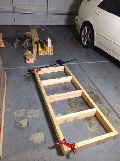 I used the template to place markings for holes on the four 60 inch 2x4 pieces.