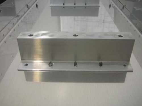 Fit and drilled fuel tank Z-brackets to the left tank baffle.
