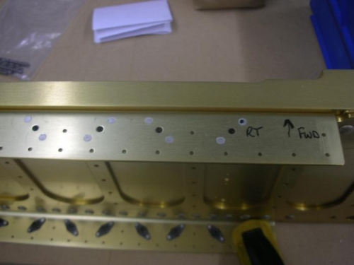 Continued attatching wing tank skin nutplates on left and right main wing spars. Countersunk screw holes.