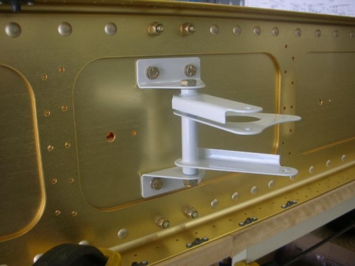 Fit, deburred and polished left and right aileron bellcrank brass bushings. Final sized aileron bellcrank bracket holes and deburred. Installed left and right aileron bellcrank brackets and bellcranks onto aft side of both main wing spars.