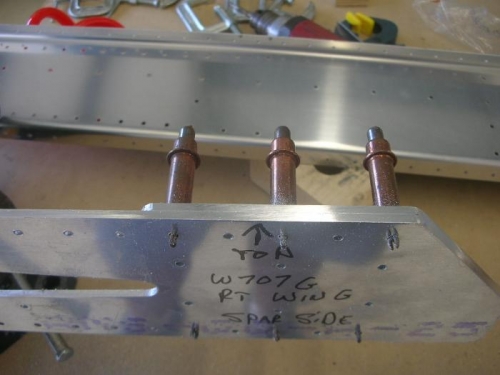 Smoothed and deburred the edges of the following items: W-707-D doubler plate, W-707-G doubler fork, W-707-E center reinforcement plate, W-707-G reinforcement plate, W-413-PP-R and W-414-PP-R aileron mount brackets. Checked all parts for fit.