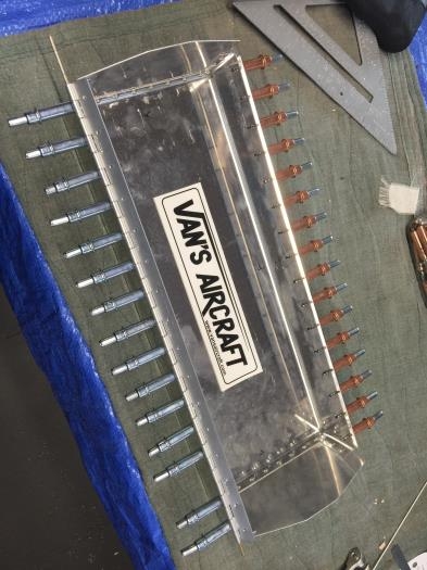 Tasks completed: 1. Final Cleco 2. Match drill all holes not previously matched 3. Cut hinge, drill, and debur 4. Final riveting.