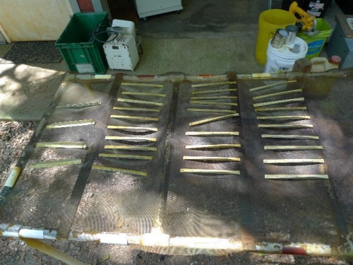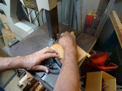 Made plywood jig for cutting corners off of aileron stiffeners.