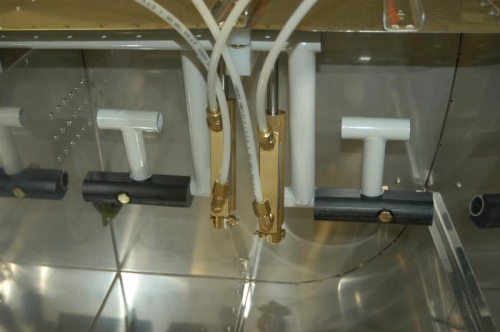 Installed brake line fittings into master cylinders as per Steps 4 and 5, page 27-04. Fabricated brake crossover lines, main lines, and reservoir lines as per pages 27-04, -05, and -06. All lines installed as instructed on the same pages.