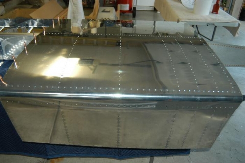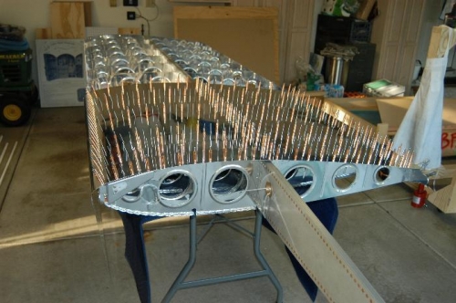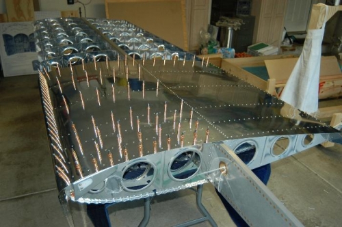 Deburred edges and holes of W-1201-L inboard wing skin. Dimpled holes as per Step 2, page 17-02. Clecoed and riveted inboard wing skin as per Figure 1, page 17-02.