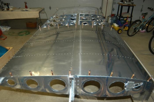 Clecoed and riveted W-1203-L outboard wing skin as per Figure 2, page 17-02.