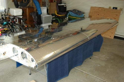 Clecoed and riveted remaining portions of upper skins of left wing as per Figure 3, page 17-04.