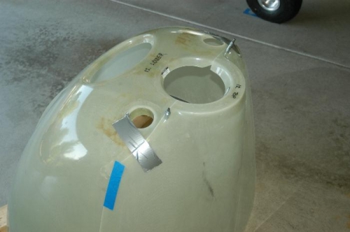 Cut slots in cowl bottom for nose gear leg, exhaust pipe, and fuel strainer access.