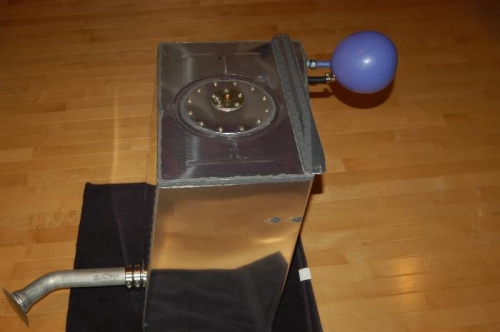 Leak tested fuel tank using the balloon method. No leaks evident using soapy water on all seams. Balloon held size for 24 hours.