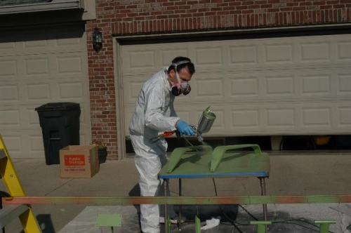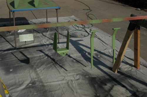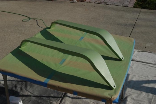 Primed main gear legs, primed and painted nose fork, flap detent bracket, and footsteps.