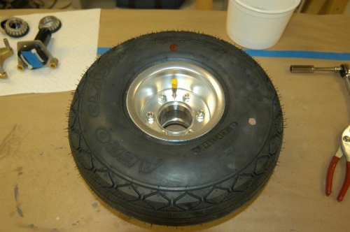 Assembled nose wheel and tire assembly and main wheel and tire assemblies as per Steps 1-9, page 35-02.