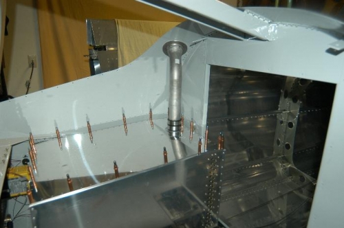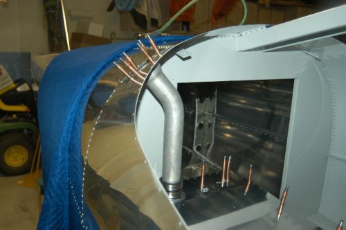 Positioned, marked, and drilled for the fuel tank filler neck as per Steps 1-4, page 37-06.