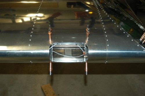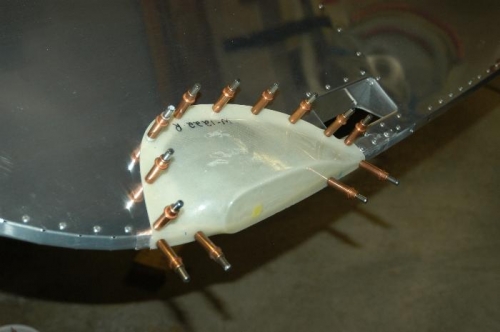 Fit right nav light extension to wing and match-drilled. Filled edge cavity with flox/epoxy and installed, wiping edges (Steps 1-6, page 40-07).