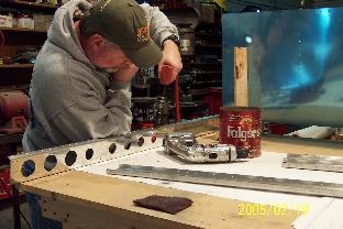 I match drilled the left skin to the skeleton of the HS. I deburred and dimpled the ribs and countersunk the flanges on the spars. I started to dimple the skin an realized that I hadnt deburred them yet. Luckily I had only dimpled about 4 unburred holes.