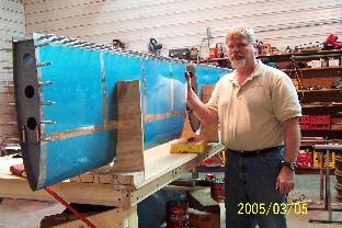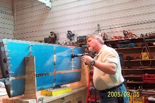 Riveted the skin to the spar and ribs. Riveted the outside rib in each side.