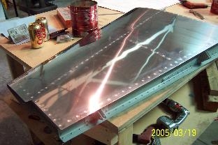 Riveted the skin to the forward spar. Riveted the skin the the ribs. Put the rear spar into place and riveted it to the skin. Finally, I riveted the ribs to the rear spar. Another piece of the pozzle is done.