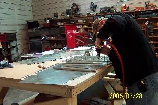 I worked on the stiffeners first thing. I had sanding to do on them that I didnt get finished last week. After they were sanded, I match drilled them to the skin. I then deburred the the holes in the stiffeners and skins, dimpled stiffeners and skins, cleaned all parts and finally primed stiffeners and skins.