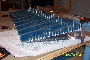 I back riveted the stiffeners to the skin. I assembled the skeleton and match drilled all holes. I made the shim that goes between the rudder horn and rib. I attached skins to the skeleton and match drilled everything. Basicly everything has been assembled and match drilled. I have disassembled everything and am ready to dimple, debur and primer all parts before final assembly.