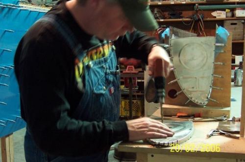 Worked on the capacitor installation. I match drilled the two capacitor plates to the two inside ribs. Soldered wires that will attatch to the plates. Installed nutplates to the plates. AT this point I sat the capacitor aside and began work on the inboard tank rib. I used a flycutter to cut the large hole in the rib where the cover plate will mount. Of course, the pickup tube mounts to the cover plate. I cleaned up the cover plate and stiffener ring and quit for the day.