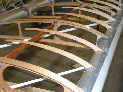 Put on two coats of poly fiber epoxy varnish on the wing rips and false ribs. Did some additiona fit up on the wing tip for the left wing. Ordered flush rivets for the tip installation.