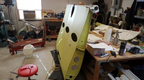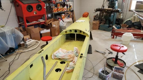 Removed the center section from the fuselage to prep prts for paint. Removed and disassembled the struts for the center section.