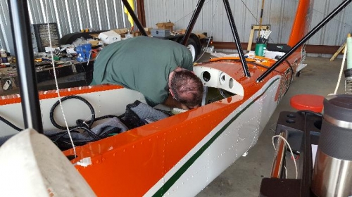 Finished all of the engine wiring except the left engine tach. Had to order a resistor in order to complete. Bundled and protected the wiring behind the rear bulkhead where it enters the struts. Installed the props.