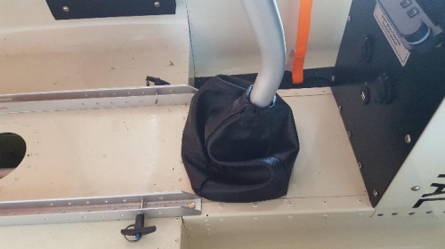 Installed the optional throttle guide plates on top of the throttle assemblies. Installed the boots on the control sticks. Finished wiring the right wingtip light and installed both tip lights using rivnuts.
