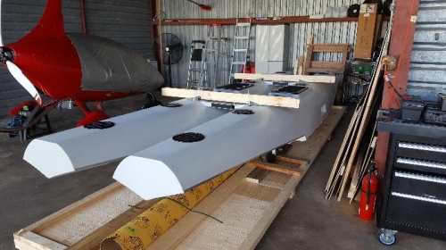 Received the floats and uncrated them. Borrowed a forl lift truck to unload them from a friens trailed.