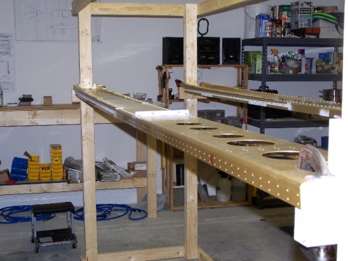 The wing spars are in the jig and all nut plated and tie downs are complete. The spars will be built into wings on this wing stand.