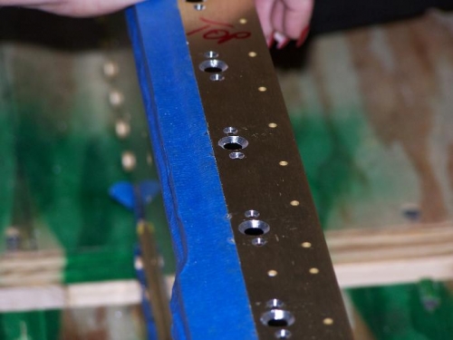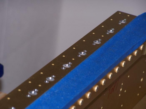 Here the spar flanges have been countersunk and deburred and are ready for the nutplates to be installed.