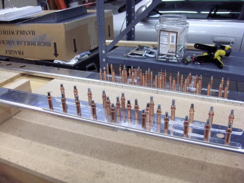 Clecoed and match drilled HS rear spar doubler to rear spar halves. Took about an hour and deburred rear spar doubler. Clecoed HS912 hinge brackets to rear spar. Will match drill them tomorrow.
