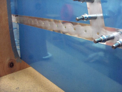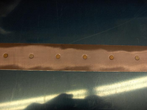 Set the first 17 flush rivets of the whole project. I had to drill the second one out because the bucking bar partially slipped off the rivet and ruined it. I got better as I went, but shooting and bucking by yourself isn't all that easy. I bought one of the tungsten bucking bars, and it worked great. All its surfaces are polished so you can use whichever face of the bar fits the situation best. Only 14983 rivets left to go.