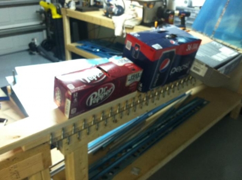 Today after work I started wrapping up the rudder. The proseal arrived from Vans by UPS this afternoon so after dinner I final riveted the rudder frame and then set the leading edge.