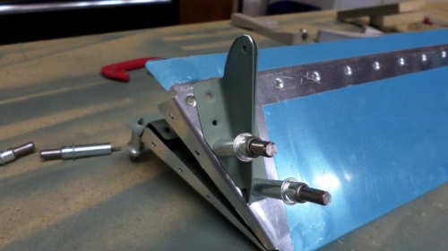 Working on trim tabs. Installed the trim tab cable attachment brackets.Getting ready to proseal the foam ribs.