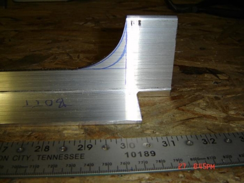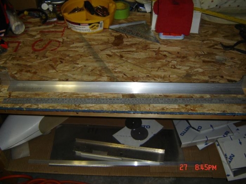 The panel appears to be structural in terms of it's location and tie in to the fuselage sides, so I wanted to make this as beefy as possible. I chose a piece of 1/8" aluminum angle to be the tie in and the lower cross member for the panel. I spent tonight cutting this piece to fit. Quite a few cuts, but I'm pleased with how it turned out.