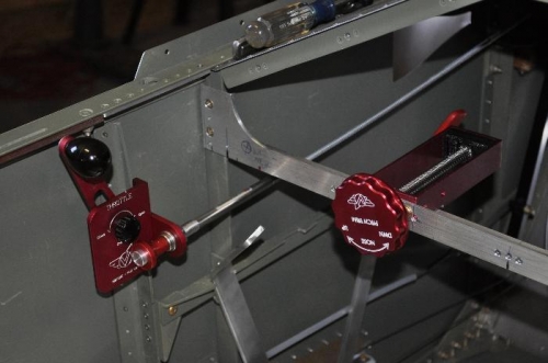 Mounted the trim to the crossmember. I prefer this mounting solution, but I'm having my doubts as to how much stuff (flap, brake, trim, mix) is jammed into a very small area. I'll spend some more time sitting and hangar flying from the seat to see if I can live with this location.
