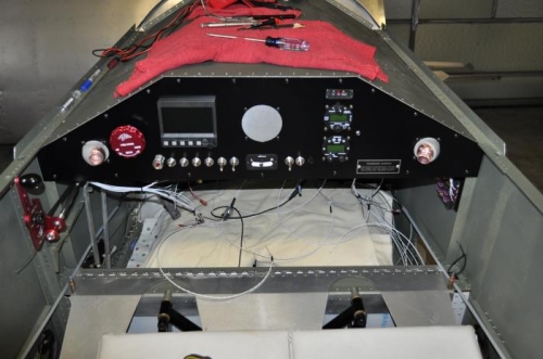 Finished the crossmember that holds the bottom of panel and reinstalled it and the panel. Working on the wiring under the panel is a nightmare for my fat butt. Getting in and out of the cockpit and under the panel is painful especially with my panel lowered. I'm seriously considering adding an access cover to the glare shield but I'm not sure I want to start cutting on it. We'll see.