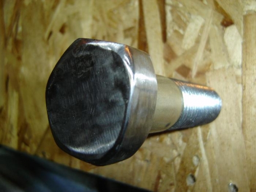 Assembled the rivet "drive mechanism" as per the Sonex workshop and instructions. Since I didn't buy the Sonex bucking bar I had to make one. I used a 1 inch x 6 inch bolt that I threw against the grinder to flatten one side of the head so that it could get in close enough to the fitting. Then polished the top of the head as the bucking surface.