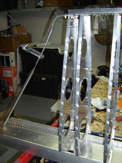 Spent today preparing to add the aft upper sikin to the LH wing. I had to make a jig to hold the alignment of rear spar alignment hole to wing station 0. I used an aluminum rod from the Ace Hardware store to do it. The rod is actually a clothes hanging rod. I just removed the grommet and the hanger piece from the ends and cut two section out. I then used my vise to flatten the ends, drilled a hole to match the rear spar and wing station 0 mating hole and a C clamp to hold the pieces together. This jig seems to be the standard for a lot of builders.