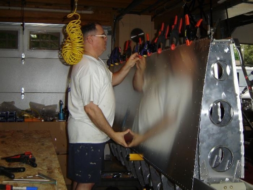 After another Sunday-after-lunch-NASCAR-induced nap, it was back to work. This thing goes together really fast when you know what you're doing. The top aft skin went on without any problems. Just the normal rib adjusting