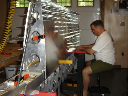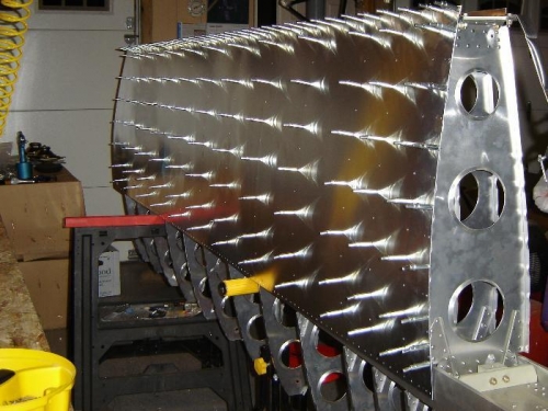 Didn't finish the bottom skin tonight. I need a helper to coerce a few ribs into place and since it is after midnight, that will have to wait until tomorrow.