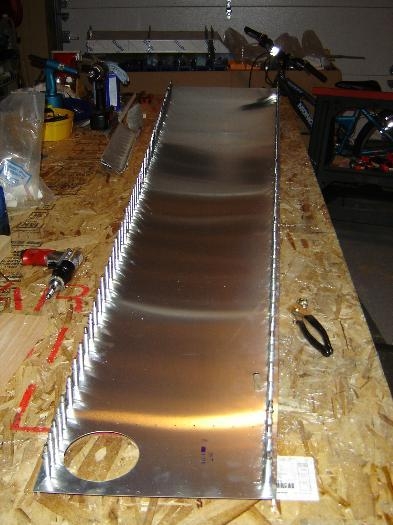 Prepared the skin by cutting the 4" access hole and the rudder cable exit. Also bent the forward edge using my hand seamer. That turned out better than I expected and didn't look bad.