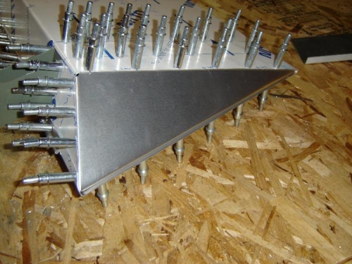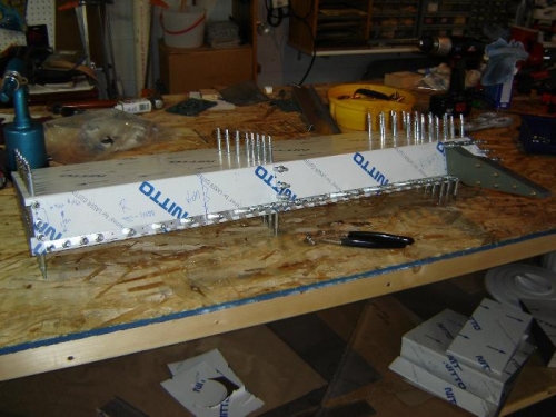Labor Day weekend. Time to labor. The replacement right aileron tip rib arrived from Sonex. Spent the day "carefully" fitting this one. It took a lot of bending, shaping, cutting, shaving, etc. to get this thing to fit right. Finally got it right and began drilling.